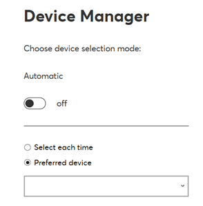 Under Choose device selection mode, users can toggle the automatic device selection.