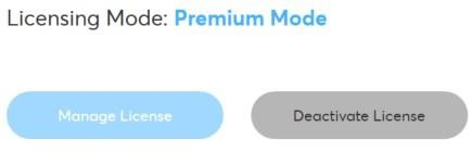 - Licensing Mode: Use the Manage License option to change the licensing mode or to install a full (Premium) license.