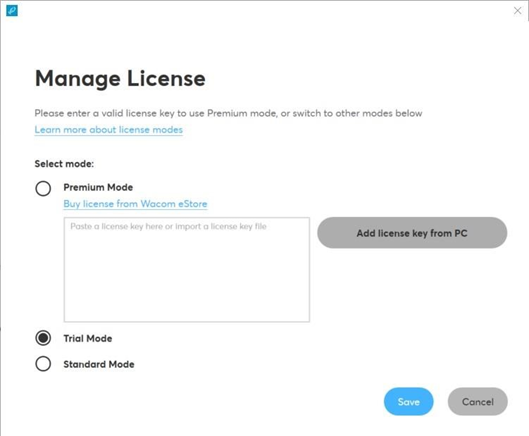*While virtual channel support is included in trial mode, it is not included by default in Premium mode. Rather, it is provided as a separate functionality that must be requested. To request this functionality, please use the Contact Us link on the developer website: https://developer.wacom.com